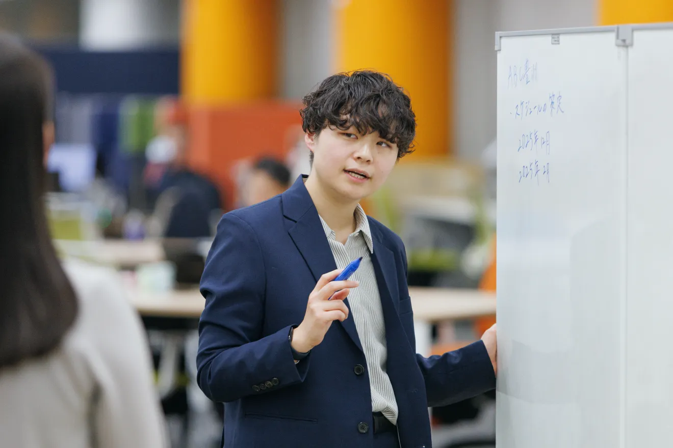 また、当社の大きな魅力は、周囲の人たちから多くを学べることです。営業経験のある先輩は論点のまとめ方が上手で、施工経験のある先輩は工事の収まりや注意点を的確に教えてくれます。特にフロントマネージャーは理事会で“どう伝えるか”の言葉選びに長けている方が多いです。自分一人では思いつかなかった説明の工夫や資料の見せ方に触れるたび、「あ、こういうやり方があるんだ」と視野が広がっていく。そんな周囲に影響されながら少しずつ自信を持って前に立てるようになっていった、この成長実感こそが一番のやりがいかもしれません。